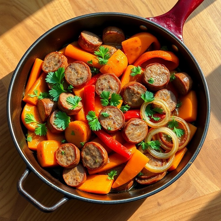 Uma receita saborosa de linguiça refogada com cebola, cenoura e pimentão, temperada com ervas aromáticas típicas do Mediterrâneo. Ideal para um café da manhã robusto e cheio de sabor, que combina a suculência da linguiça com a doçura dos legumes, proporcionando uma refeição equilibrada e nutritiva.