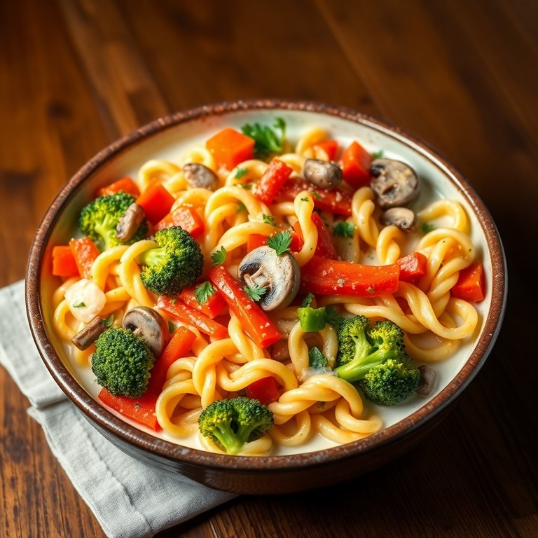 Una opción rápida y saludable que fusiona los fideos tornillo en un salteado cremoso con leche y una variedad de verduras frescas, ideal para una comida ligera y nutritiva. Este plato combina la textura al dente de los fideos con la suavidad de la leche y el sabor vibrante de las verduras salteadas, logrando un equilibrio perfecto entre sabor y salud.