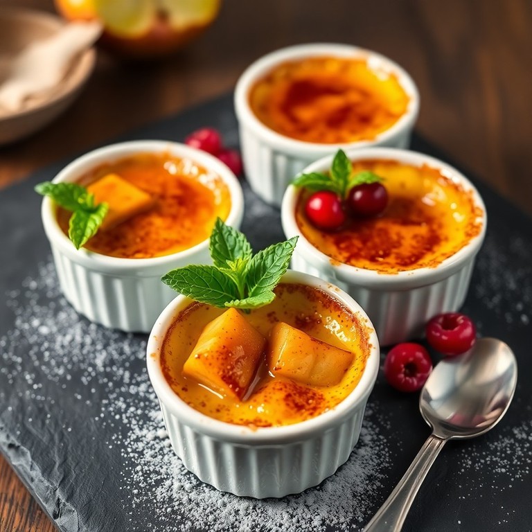Un postre elegante y cremoso que fusiona la suavidad de la crème brûlée clásica con el dulzor de la manzana caramelizada y el aroma cálido de la canela. En la base, una capa de manzanas salteadas aporta frescura y textura, mientras que la superficie crujiente de azúcar caramelizado añade el toque final perfecto. Ideal para una ocasión especial o para sorprender en cualquier comida.