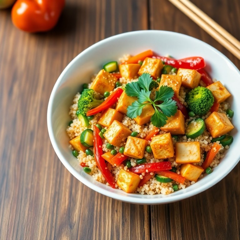 Un plat vegan rapide et savoureux combinant du quinoa léger, des légumes croquants et du tofu ferme, relevé d'une sauce asiatique parfumée. Idéal pour un dîner équilibré et coloré, ce stir-fry offre une explosion de textures et de saveurs tout en restant simple à préparer.