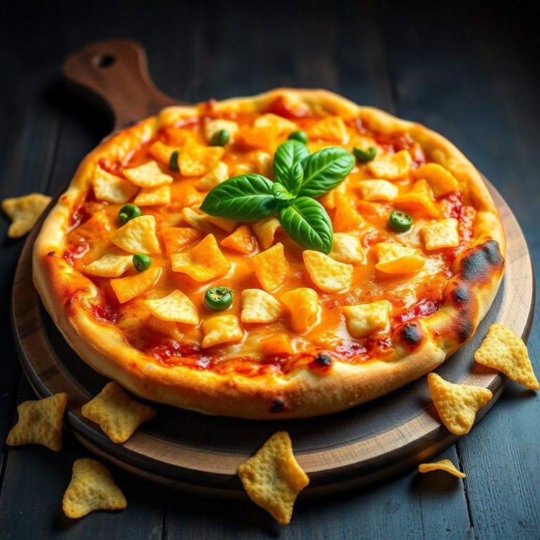 Una pizza crujiente y sabrosa que combina la textura única y el sabor intenso de los Doritos con queso cheddar fundido, creando un snack divertido y delicioso para compartir en cualquier ocasión.