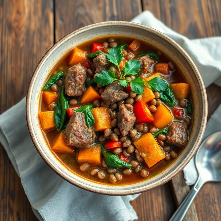 Guiso de lentejas y verduras con carne de res magra