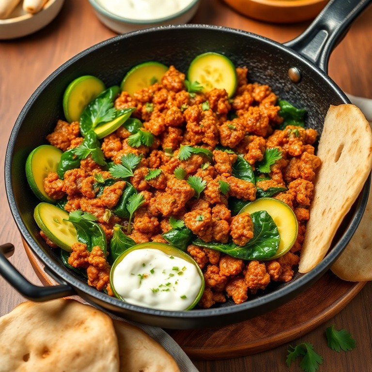Een snelle en smaakvolle wokschotel waarin kruidig gemengd gehakt samenkomt met frisse courgette en verse spinazie. Deze Midden-Oosterse twist op shoarma is perfect voor een voedzame doordeweekse maaltijd boordevol groenten en aroma's.