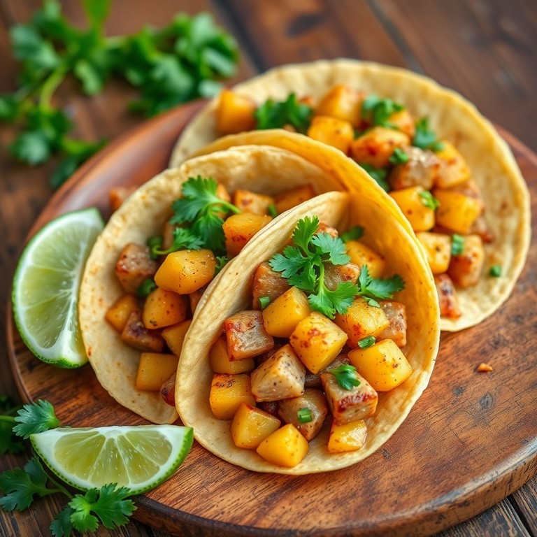 Tacos rápidos y sabrosos que combinan carne de cerdo jugosa y papas doradas, sazonados con especias tradicionales mexicanas. Servidos con cilantro fresco y un toque de limón para realzar los sabores, estos tacos son perfectos para un almuerzo rápido y lleno de sabor callejero auténtico.
