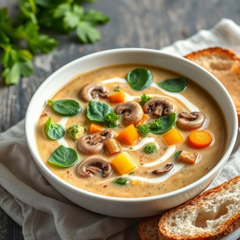 Sopa cremosa de champiñones y espinacas con toque de zanahoria