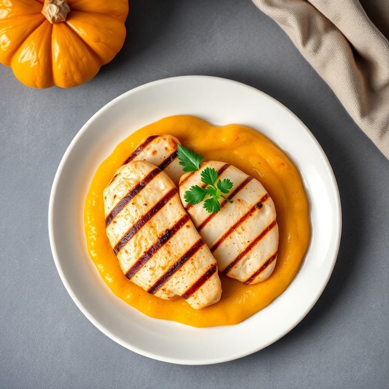 Una receta saludable y suave, ideal para niños, que combina pollo magro a la plancha con un dulce y cremoso puré de calabaza. Esta preparación es fácil y rápida, perfecta para una comida nutritiva y reconfortante.
