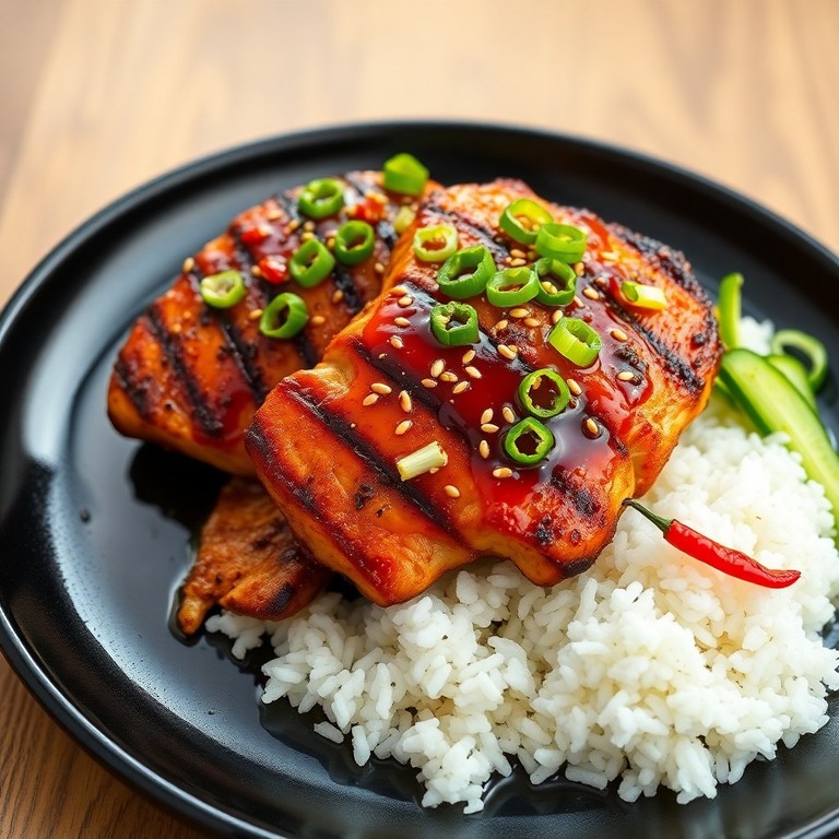 Deze kipdijen krijgen een Aziatische twist door een marinade met sojasaus, gember en knoflook, waarna ze perfect worden gegrild. De pittige, zoete BBQ saus combineert Oosterse smaken met een vleugje pit, waardoor het gerecht een ware smaakexplosie wordt. Heerlijk als hoofdgerecht met gestoomde rijst en frisse komkommer.