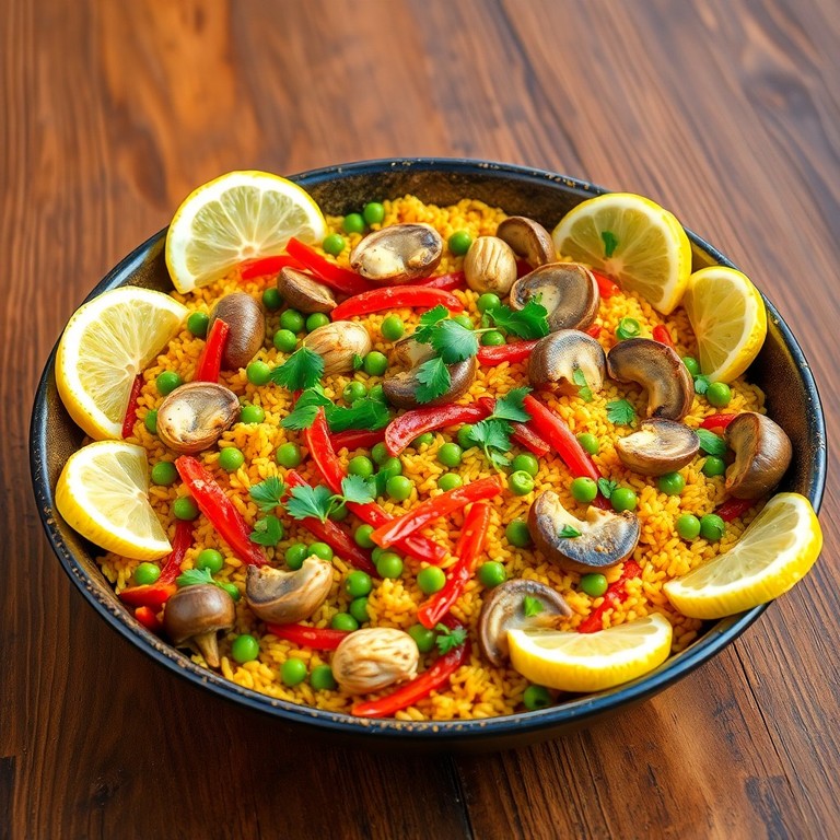 Una versión vegana de la tradicional paella española, que combina arroz con una variedad de mariscos vegetales y verduras frescas. Esta receta es ideal para quienes buscan una comida saludable, llena de sabor y textura, sin ingredientes de origen animal. La mezcla de pimientos, guisantes, alcachofas y mariscos vegetales aporta color y un delicioso contraste de sabores que evocan la costa mediterránea.