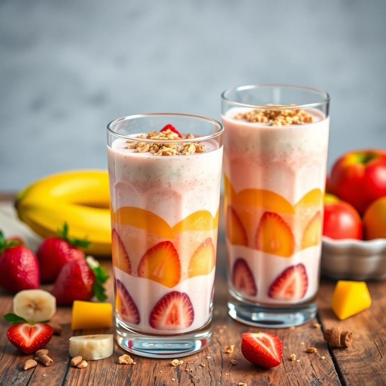Un batido cremoso y refrescante que combina yogur griego con frutas variadas y un toque dulce de miel, ideal para un desayuno nutritivo y fácil de llevar. Esta bebida aporta energía y frescura, perfecta para comenzar el día con vitalidad.