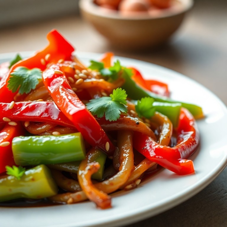 Un plato rápido y sabroso que combina cebolla y pimientos rojo y verde salteados en una deliciosa salsa teriyaki casera. Ideal para una cena ligera, este salteado ofrece un equilibrio perfecto entre dulzura y sabor umami, con verduras crujientes y jugosas.