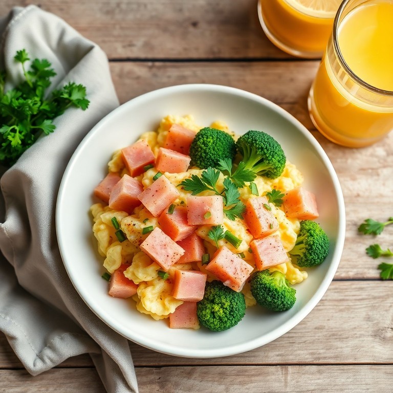 Un revuelto esponjoso y sabroso que combina brócoli al dente y jamón salado, sazonado con una mezcla de especias aromáticas. Perfecto para un desayuno rápido y lleno de energía, este plato ofrece una textura cremosa y un equilibrio ideal entre sabores frescos y salados.