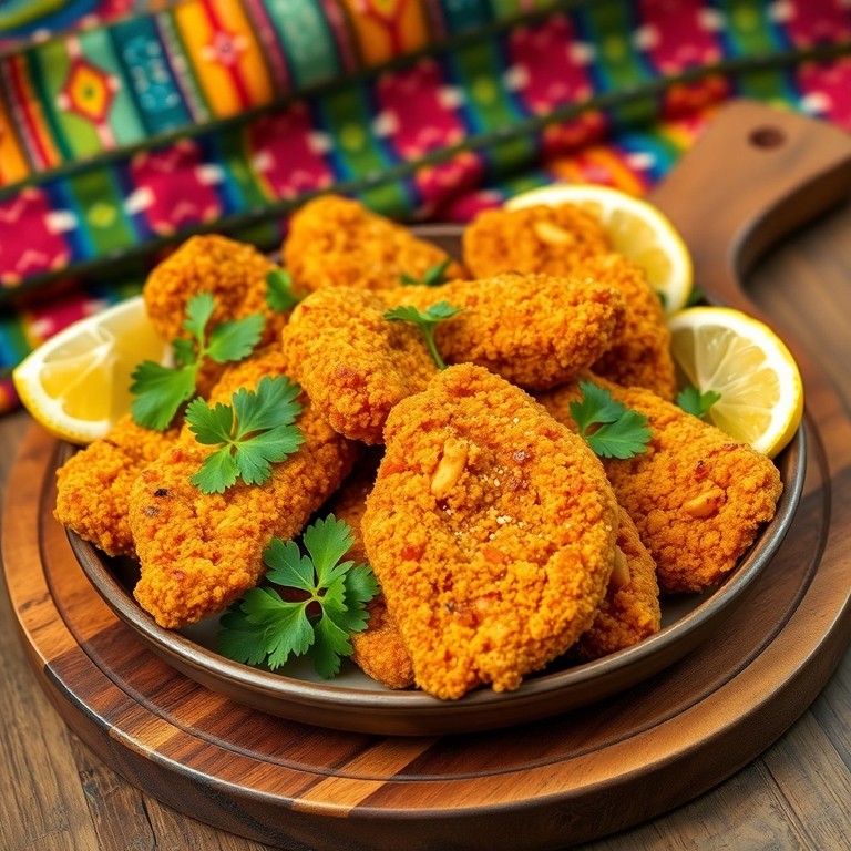 Deliciosas tiras de pollo empanizadas con una mezcla de especias mexicanas que aportan un sabor intenso y un toque picante. Crujientes por fuera y jugosas por dentro, estas tiras son ideales para una comida rápida y llena de sabor, acompañadas de una salsa fresca o guacamole.