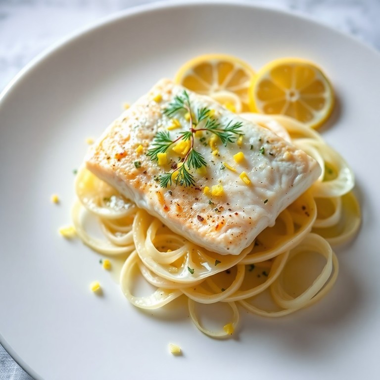 Un plato principal elegante y aromático que combina pescado fresco marinado con hierbas, hinojo en rodajas finas y un toque vibrante de ralladura de limón. Cocinado al horno, este plato resalta los sabores naturales del pescado y aporta una textura jugosa y ligera, ideal para una comida sofisticada pero sencilla.