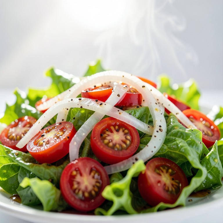 Ensalada Fresca de Tomate Cherry, Cebolla y Lechuga