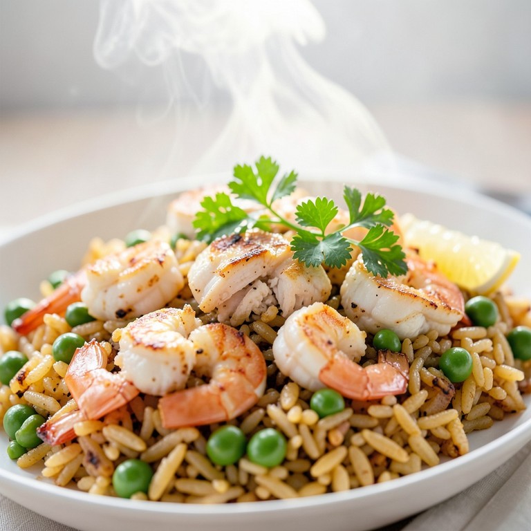 Una versión simplificada y deliciosa de la paella tradicional, con pollo tierno y camarones jugosos, lista en menos tiempo sin sacrificar el sabor auténtico.