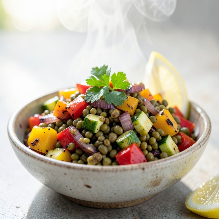 Ensalada de Lentejas con Vegetales Asados y Aderezo de Limón