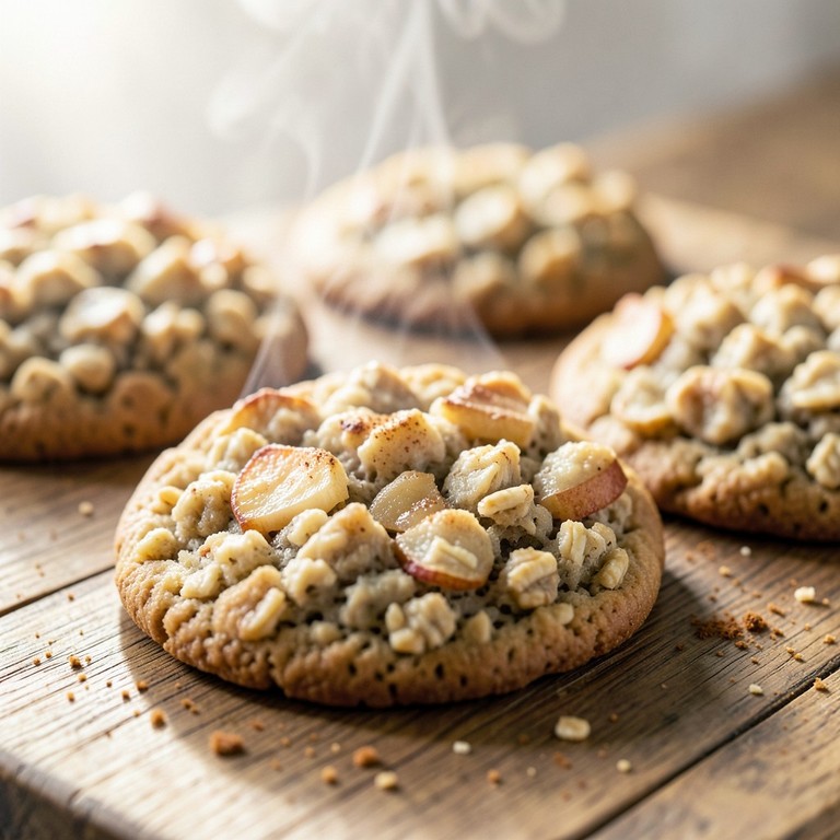 Galletas rústicas elaboradas con copos de avena sin gluten y puré de manzana natural, ofreciendo una textura crujiente por fuera y suave por dentro, totalmente libres de lácteos, frutos secos y chocolate.