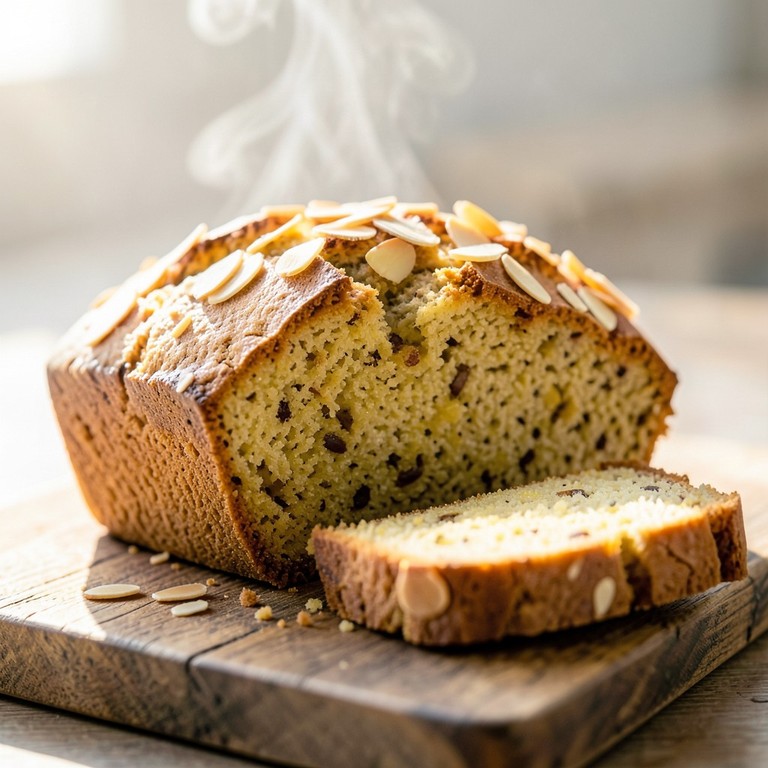 Un panqué esponjoso y nutritivo elaborado con harina de almendras y plátanos maduros, libre de lácteos, gluten y azúcares refinados, perfecto para un postre saludable.