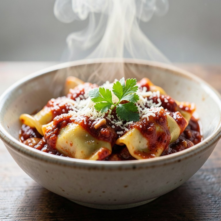 Ravioles de Cuatro Quesos con Salsa de Espinazo