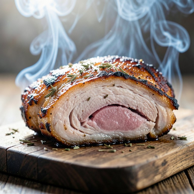 Una panceta de cerdo jugosa y tierna, sazonada con una mezcla vibrante de especias criollas y ahumada lentamente en barril para lograr una piel crujiente y un sabor profundo e irresistible.