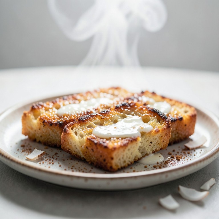 Unas torrijas tradicionales adaptadas con una infusión cremosa de leche de arroz y coco, logrando una textura suave y un sabor tropical delicado, perfectas para un postre sin gluten.