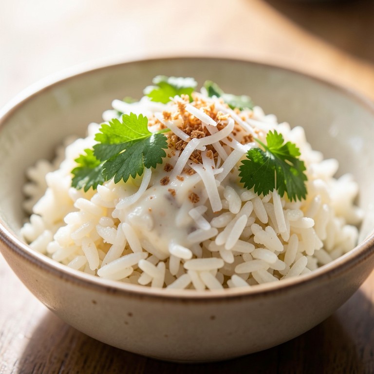 Un arroz aromático y delicado, con la cremosidad de la leche de coco y el toque crujiente del coco tostado, ideal para equilibrar platos especiados.
