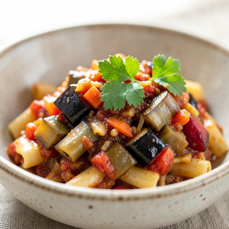 Un guiso mediterráneo clásico que combina la textura de la berenjena con el sabor intenso de la sardina, creando una salsa rústica y reconfortante.