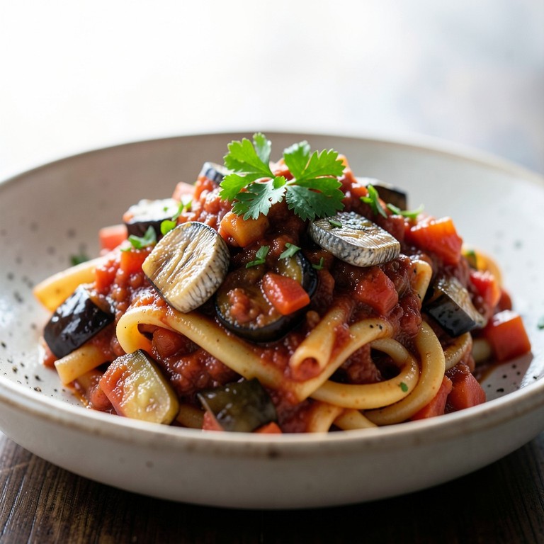 Pasta con ragú rústico de sardinas y vegetales
