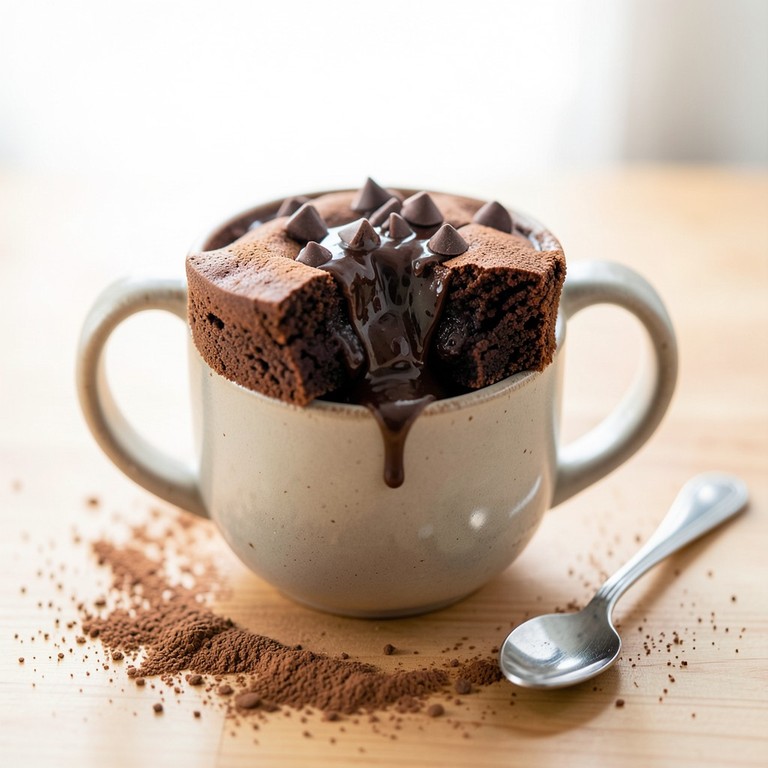 Un brownie individual, húmedo y chocolatoso, preparado en minutos directamente en una taza para satisfacer cualquier antojo dulce de forma rápida y sencilla.