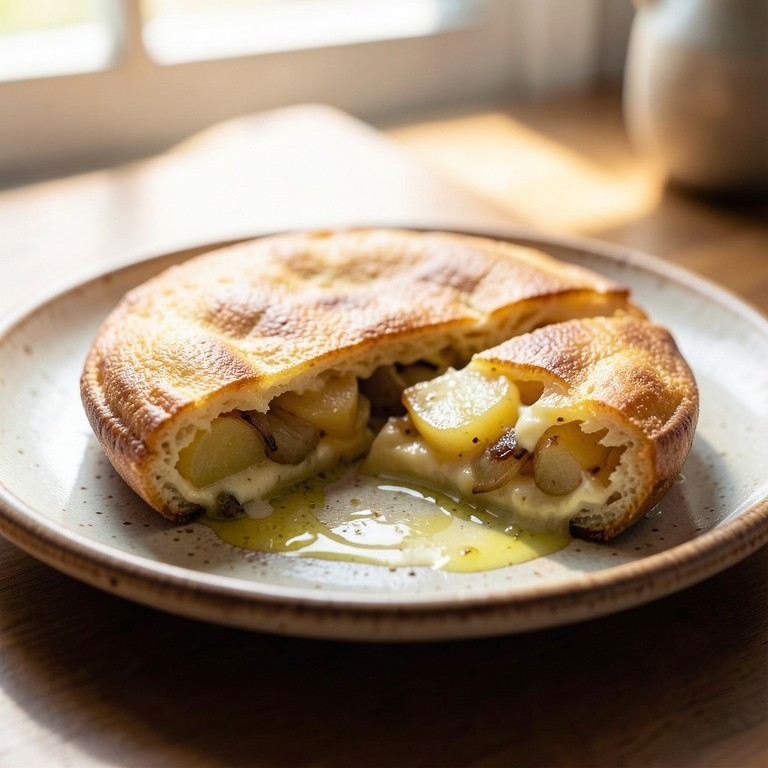Une omelette espagnole traditionnelle aux pommes de terre fondantes et oignons caramélisés, offrant une texture riche et un goût authentique.
