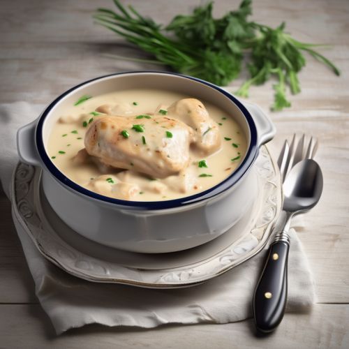 A Georgian dish made with chicken cooked in a creamy garlic sauce.