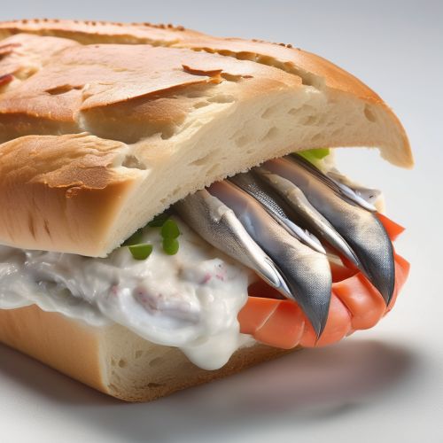 A tasty and flavorful bread packed with crab sticks, cream cheese, and sprat fish.