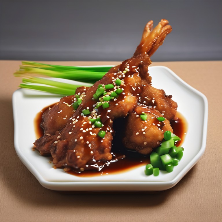 A delicious and crispy rabbit dish cooked in a deep fryer and topped with soy sauce.