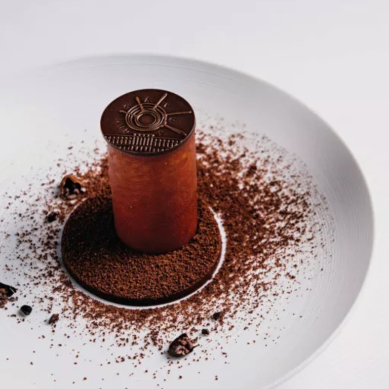 Entremets Dulcey, cœur de pommes rôties au beurre salé, croustillant spéculoos