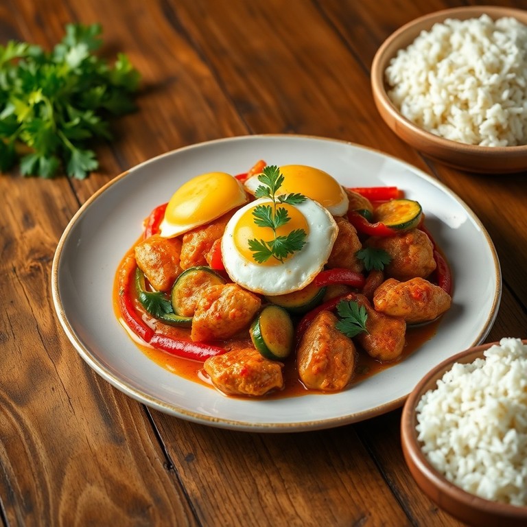 Sauté de Haut de Cuisse à l'Indonésienne avec Œufs au Plat