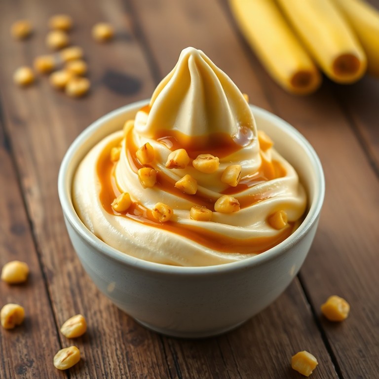 Glace Végétalienne, Onctueuse à la Banane, Arôme Caramel Salé et Maïs Croustillant (Sans Sucre)