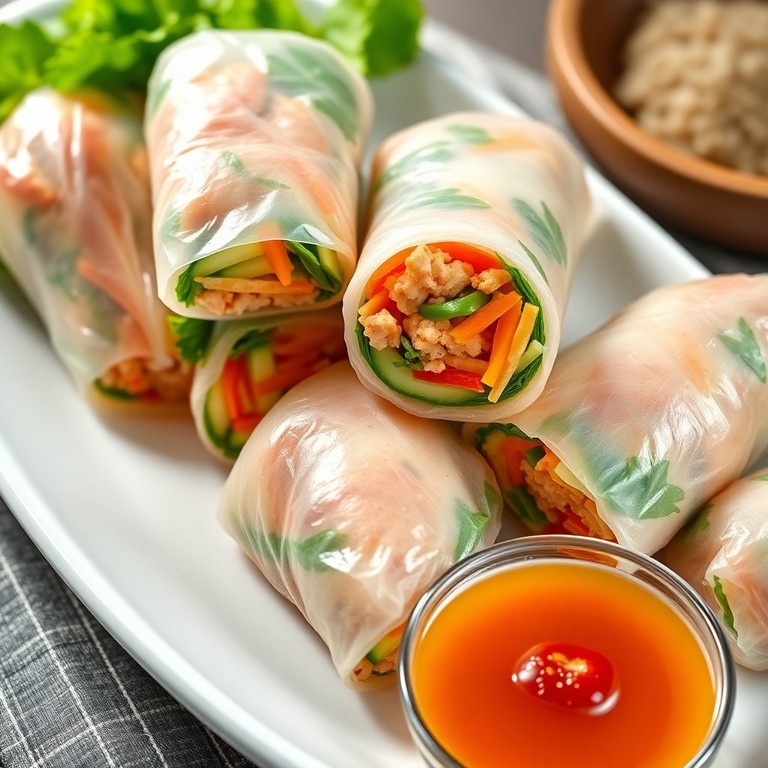 - Rouleaux de Printemps Frais au Poulet et Légumes Croquants