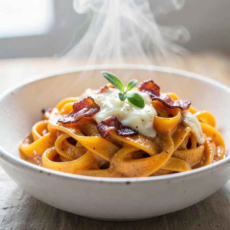 - Tagliatelles Crémeuses au Potimarron et Lardons Fumés