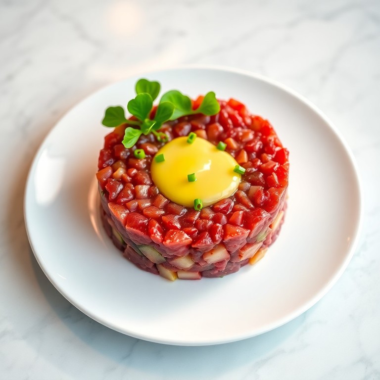 - Tartare de Bœuf à la Poire et à l'Émulsion Vierge