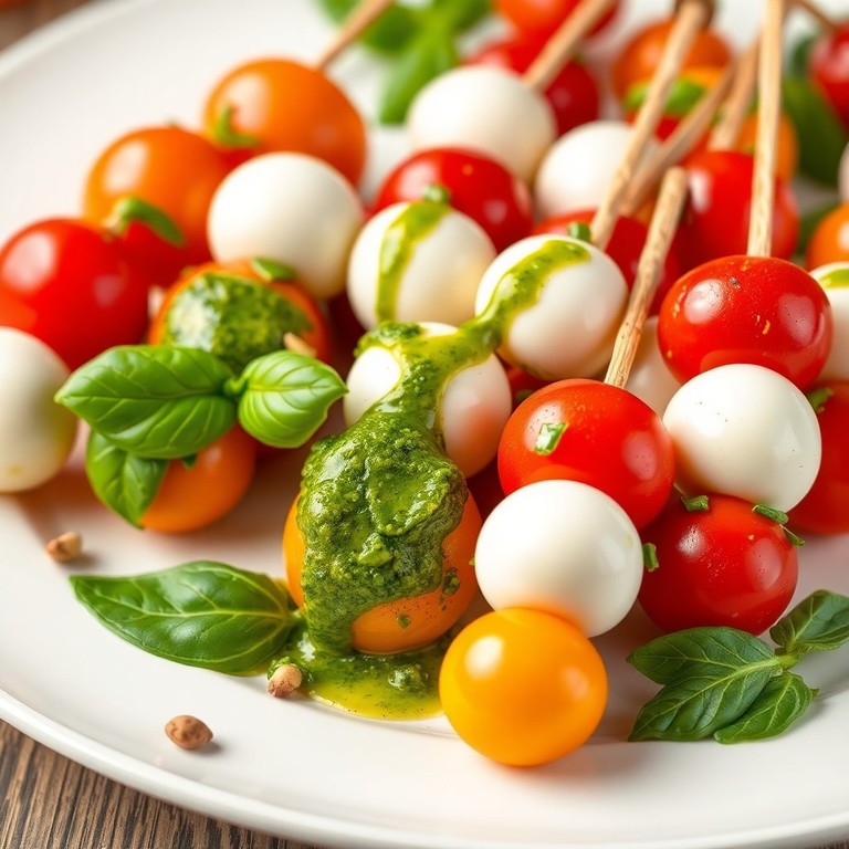 - Bouchées de mozzarella et tomates cerises au pesto