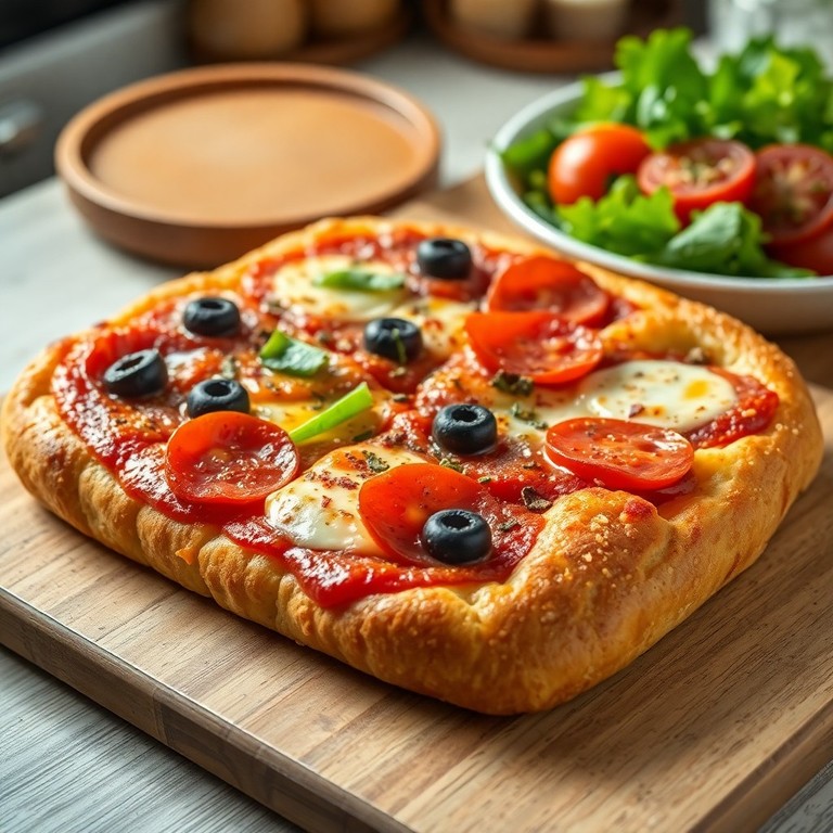 Focaccia Façon Pizza aux Olives et Lardons sur Pâte Feuilletée