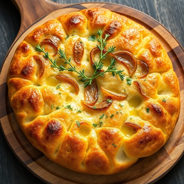 Focaccia aux Herbes et Oignons Caramélisés