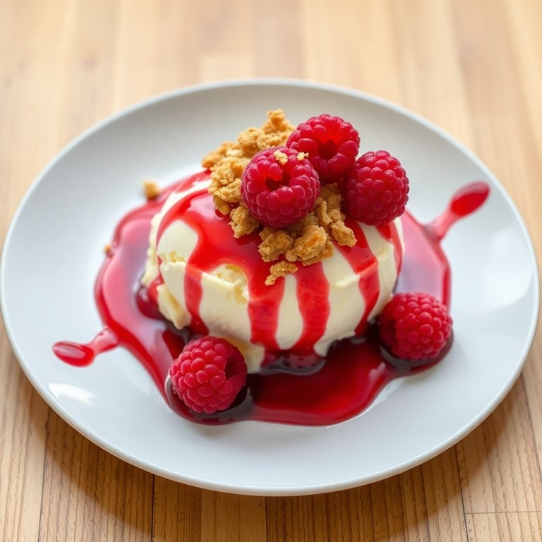 Glace au Citron avec Coulis de Framboise et Crumble de Patatas Bravas