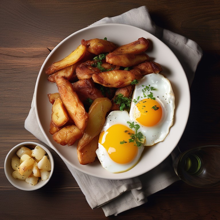- Plat Principal: Aiguillettes de Poulet et Pommes de Terre Sautées avec Œufs au Plat
