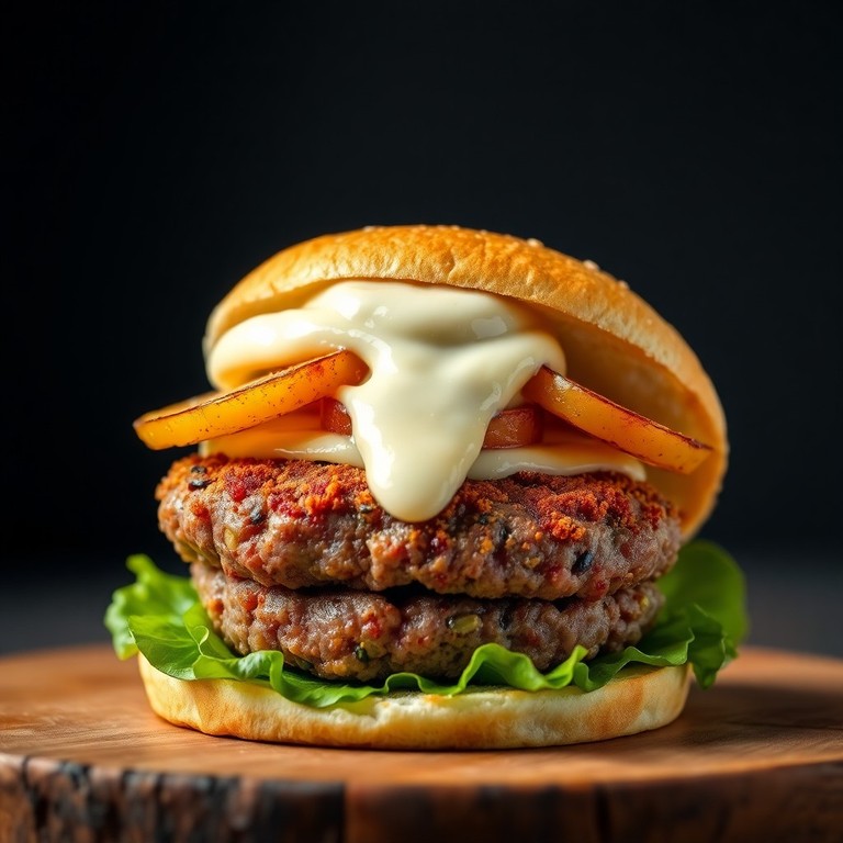 - Burgers de Bœuf Épicé, Pommes de Terre Rôties et Camembert Croustillant