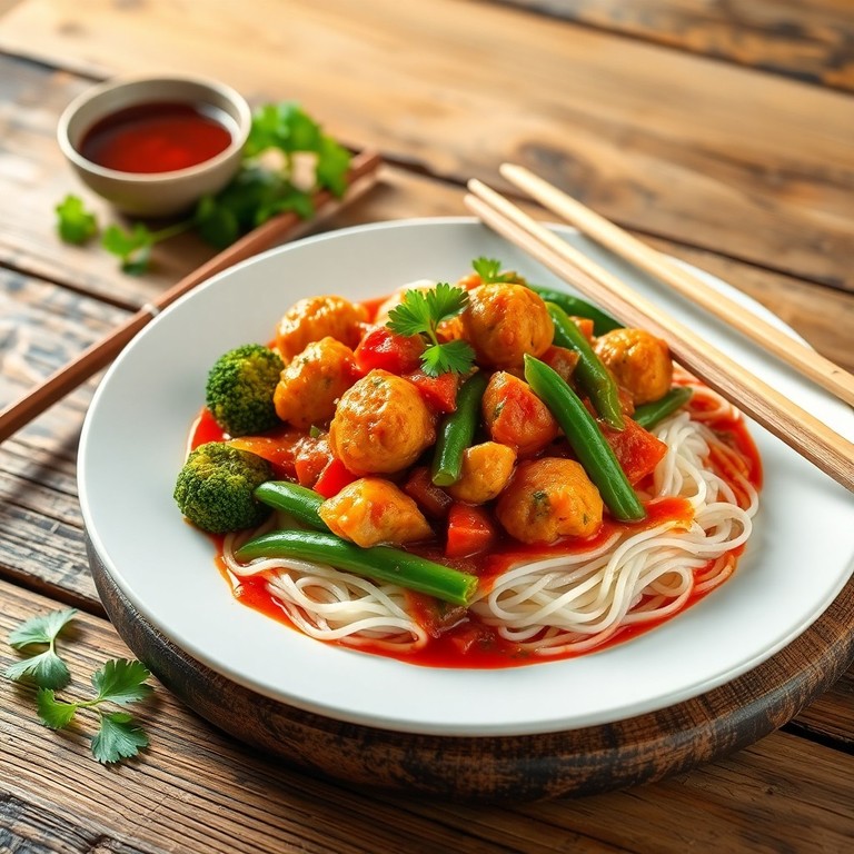 Sauté Exotique de Poulet et Légumes sur Nouilles de Riz