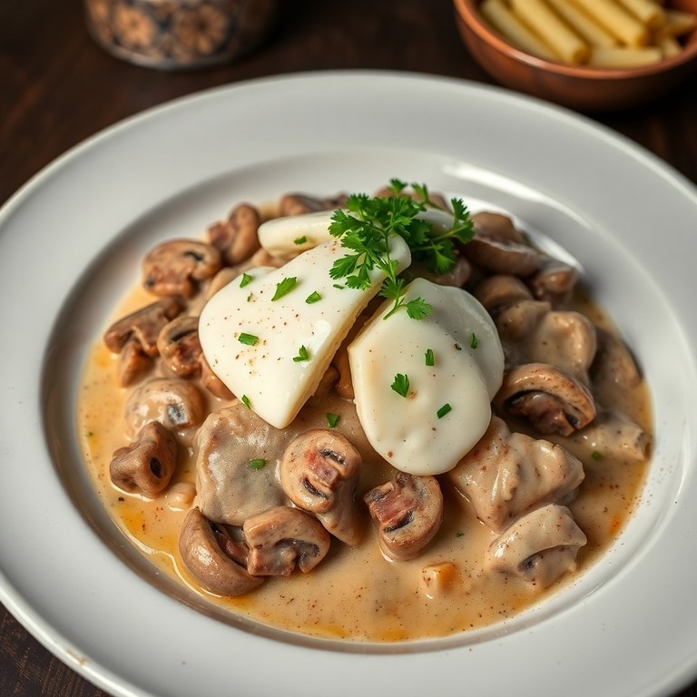 - Sauté de Porc Façon Stroganoff aux Champignons et Moutarde