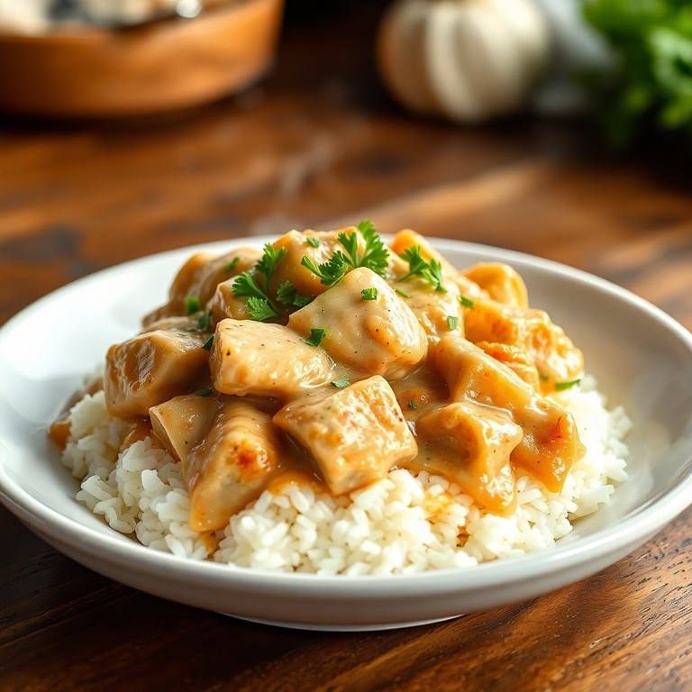 - Poulet Stroganoff express sur lit de riz