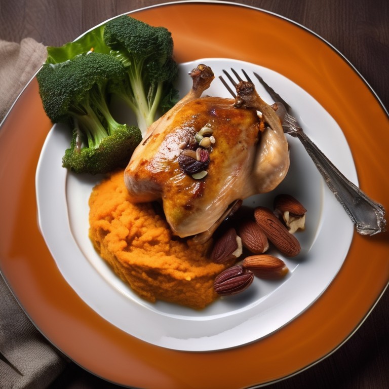 - Poulet Farci aux Fruits Secs et aux Noix avec une Purée de Patates Douces à la Vanille