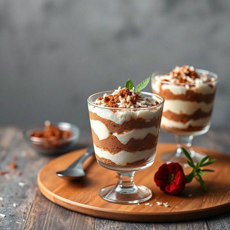 - Tiramisu vegan sans gluten à la noix de coco et cacao avec crème prête